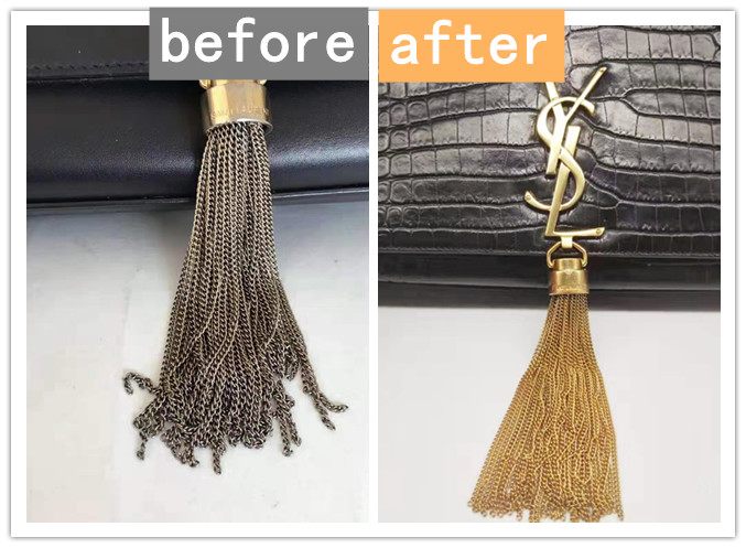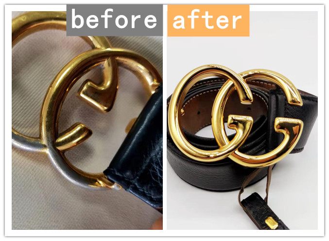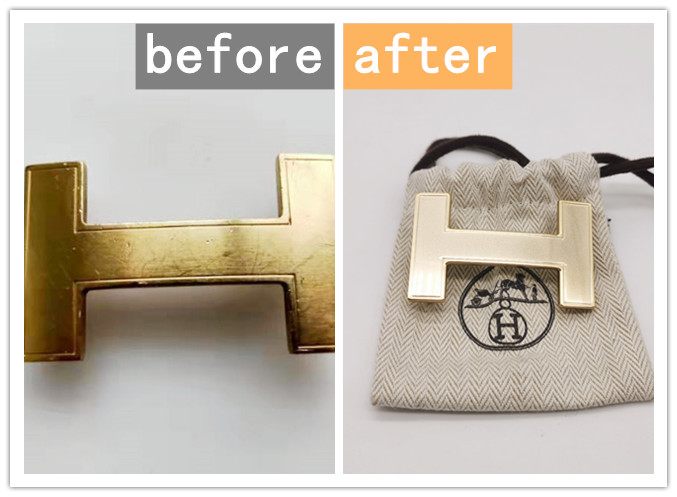其实不管是包包、鞋子还是腰带,上面都是少不了五金配件的,所以五金修复也是护理项目中的另一大项。其实金属外面有一层电镀保护层,但是只有0.03mm-0.06mm,非常的薄,所以极易磨损。在保护层磨损后,里面的金属就会与空气接触,就会慢慢发生氧化现象。